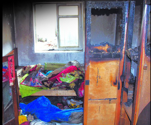 ????和村里的一些房子比起來,這間屋子很普通,甚至算是簡陋,透過被熏黑的窗戶,記者看到屋里一片凌亂。黑色的大門緊閉,門上的一把大鎖,預(yù)示著屋里此時沒有人居住。