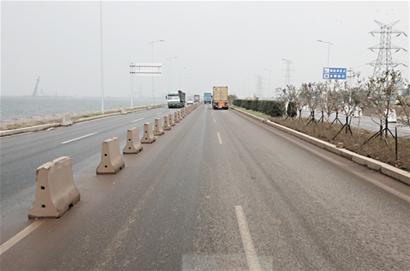 ????昨日下午,記者驅(qū)車(chē)自杭鞍快速路駛上正在施工中的環(huán)灣大道。記者看到,因東半幅仍在做最后的施工細(xì)節(jié)處理,西半幅被臨時(shí)隔離墩設(shè)置成雙向行駛道。到了與海灣大橋相連處,由于施工作業(yè)面較多,且原來(lái)的收費(fèi)口已封死,因此道路顯得較為擁堵。目前膠州灣高速公路市區(qū)段正在進(jìn)行路面拓寬的施工,3個(gè)原來(lái)的出入口收費(fèi)站封閉,將改造成城市道路的出入口,主要采用立交橋的方式。