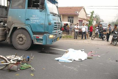 ????昨天下午1時(shí)許,記者趕到現(xiàn)場(chǎng)看到,婦女的尸體還在地上,周?chē)鷿M(mǎn)是血跡,交警在尸體上蓋了一塊塑料布。一輛女式自行車(chē)停在路中央,前輪和車(chē)筐都已經(jīng)變形,車(chē)把上掛著一個(gè)布包。一輛內(nèi)蒙古籍的大貨車(chē)斜停在路上,車(chē)頭和車(chē)尾分別在雙黃線(xiàn)兩側(cè)。幾名交警有的在疏導(dǎo)交通,有的在勘察現(xiàn)場(chǎng)。記者看到,肇事司機(jī)顯得很緊張,記者上前詢(xún)問(wèn)情況,但他什么也不肯說(shuō)。