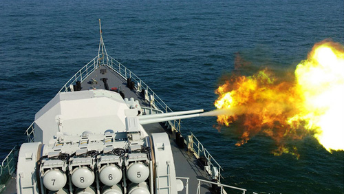 中國軍艦火炮對(duì)海上目標(biāo)實(shí)彈射擊 王松岐攝