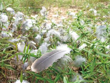 ????記者沿途看到,在斷樹旁邊的草叢中,散落了許多鳥的羽毛。記者仔細(xì)查看周圍,沒發(fā)現(xiàn)鳥網(wǎng)?!熬W(wǎng)鳥的不法分子都是凌晨三四點(diǎn)鐘下手,天一亮他們就收網(wǎng)跑了?!闭诟∩缴咸羲膶O先生告訴記者,地上的鳥毛都是網(wǎng)鳥者現(xiàn)場拔下來的,網(wǎng)鳥者會把被網(wǎng)纏得太緊的小鳥弄死,現(xiàn)場拔掉鳥毛,這樣就能保證鳥身上的脂肪不被消耗,賣的時(shí)候更肥一些。據(jù)了解,一只死斑鳩的價(jià)格在市場上能賣到十六七元,而活的斑鳩在飯店里能賣到30元。