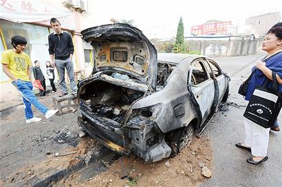 ????“這輛榮威轎車的車牌號后三位是888,車看起來很新不應該會自燃?!编従臃Q,轎車司機已經(jīng)露面,應該就是小區(qū)的居民。消防部門正在調(diào)查汽車起火的原因。(黃飛 于滈 攝影報道)