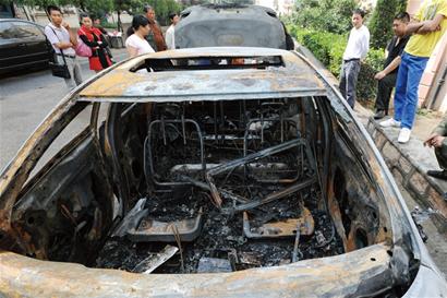 ????“當時我正在家里熟睡,就聽見樓下傳來一陣汽車的警報聲,剛開始我還沒太在意,后來警報聲老也不停,我到陽臺窗口看時,窗外已經(jīng)是一片火光?!庇浾呗動嵹s到現(xiàn)場時,住在旁邊樓上的王先生告訴記者,當時他的車就停在起火榮威轎車后面,高溫火焰將車頭燙化后,他的車開始不斷響起警報聲,等他沖下樓時,榮威轎車已經(jīng)著成了一輛“火車”,不斷發(fā)出“轟隆”的炸響。王先生冒險沖上前,將自己的車挪開,幾分鐘后榮威轎車油箱突然爆炸,周圍成了一片火海。