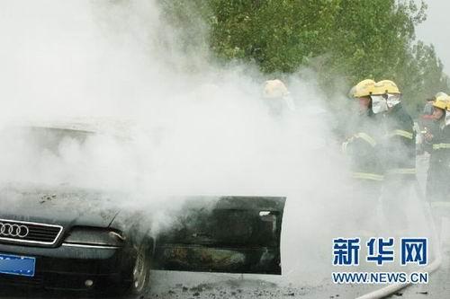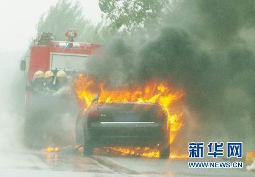 10月10日,一輛奧迪轎車在陜西三原縣境內(nèi)突然起火自燃。短短十幾分鐘,車輛被大火燒得面目全非,所幸車上司機迅速逃離,沒有造成人員傷亡(新華社記者 陳昌奇 攝)