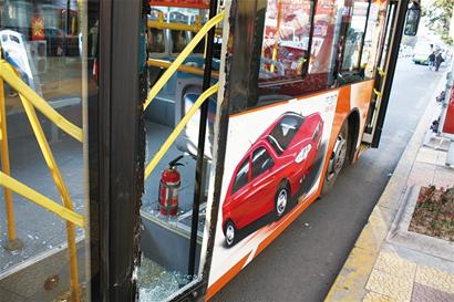 ????在劉先生的指引下,記者在離事故現(xiàn)場100米處找到了造成交通事故的兩輛車。只見公交車后側(cè)車門被撞得凹陷進去,車內(nèi)滿是米粒大碎片,綠色的“獵豹”停在公交車后面,車體的橫向保險杠被撞彎呈90度與車體垂直。“當(dāng)時車輛已快到站了,我看馬路右側(cè)內(nèi)車道空著,就想靠過去進站,結(jié)果后面這車沒減速就沖了上來,幸好這車門是特殊玻璃制成的,要不然非傷人不可。”公交司機說。 (王曉先 王壽林 攝影報道)