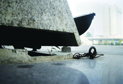國展中心東廣場,地面和建筑物之間有明顯的縫隙。季宇軒 范曉林 攝