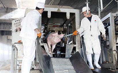 ????金鑼集團(tuán)是臨沂當(dāng)?shù)刈畲蟮纳i屠宰基地之一。11月3日中午,記者趕到位于臨沂城郊的金鑼工業(yè)園。