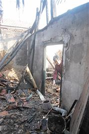 ????前天晚上11時許,村里幾名男子從外面飯店吃完飯回到村里,突然發(fā)現(xiàn)村內(nèi)火光沖天,幾人靠近一看才知道是獨居老人楊某家中起了大火,這幾名男子立即通知村里的村干部,并撥打了119報警電話。隨后村民及消防人員共同將大火撲滅。遺憾的是,當眾人將老人從燒毀廢墟中抬出來后,老人已身亡。村民楊先生告訴記者,去世老人有抽煙習慣,雙腳有殘疾,走路不是很方便,但身體一直很硬朗。記者從膠州市消防部門了解到,初步調(diào)查起火原因可能是老人生煤爐不慎引發(fā)火災。 (牟成梓 孫強 攝影報道)