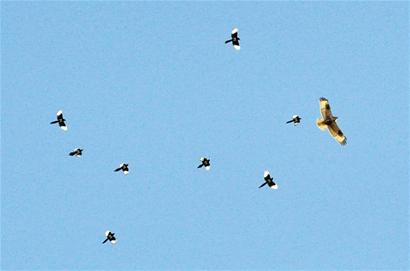 ????鵲群向老鷹發(fā)動攻擊