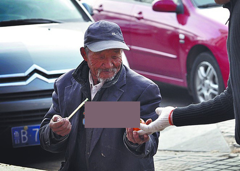 ????雖然許多人從來沒注意到這位特殊的鄰居,但也有很多人關(guān)心著老人?!扒鄭u好人多啊,辣雞架的老板每天都把菜給我準(zhǔn)備好,我這有七床被都是小區(qū)里的人送的,鍋碗瓢盆也都是人家給的!”老人笑呵呵地告訴記者,天泰小區(qū)門口的水果攤老板經(jīng)常會把賣不完的水果給他,有時候他吃不完還會送給同行的老鄉(xiāng)?!拔以诩叶汲圆涣诉@么好,前些日子回家呆了兩個月我瘦了六斤,回來不長時間就長回來了?!?/p>