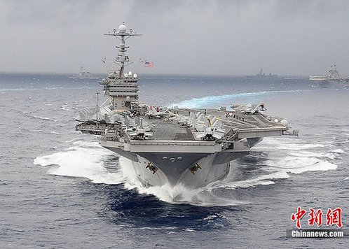 11月28日,韓美聯(lián)合軍事演習(xí)在黃海海域舉行。美軍派出“喬治·華盛頓”號航母、9600噸級巡洋艦及9750噸級驅(qū)逐艦參加演習(xí)。韓軍也投入7600噸級“世宗大王”艦、兩艘4500噸級驅(qū)逐艦以及巡邏艦、護(hù)航艦、戰(zhàn)斗支援艦和反潛飛機(jī)等參加演習(xí)。圖為11月17日,美國“喬治·華盛頓”號航母在日本沖繩附近演習(xí)。