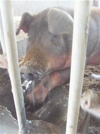 ????這時(shí),一頭體格健壯的豬靠近了噴頭,張開(kāi)嘴巴咬住了這個(gè)噴頭,清澈的水流到了豬的嘴里,原來(lái)這是豬喝水的地方。