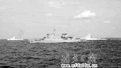 ????巡航中,面對只有兩艘、總噸位不到4000噸的中國漁政編隊,日本方面“如臨大敵”,最多時竟出動了7艘巡邏船,如“貼身膏藥”般緊盯我漁政編隊;同時,其海上保安廳和海上自衛(wèi)隊分別出動63架次偵察機、直升機,不停在我編隊上空盤旋。