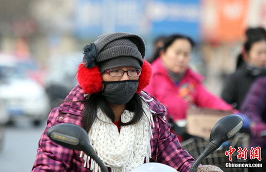????12月6日,河南鄭州,民眾全副“武裝”抵御寒潮襲擊。5日傍晚,中央氣象臺發(fā)布的天氣預(yù)報(bào)顯示,從當(dāng)日起,受強(qiáng)冷空氣影響,未來三天,中國中東部大部地區(qū)都將先后出現(xiàn)6~12℃降溫,其中,吉林東部、遼寧中東部、山東、江蘇等地的部分地區(qū)降溫幅度可達(dá)14~16℃。中新社記者 王中舉 攝