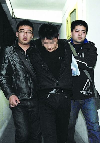嫌疑人凌某(中)被民警抓獲。 楊維斌 攝 ????某公司老板張某應(yīng)女網(wǎng)友之邀去開房,結(jié)果中了圈套,被人搶走現(xiàn)金和信用卡,最終損失6萬余元。12月6日,南京玄武警方在案發(fā)兩天后偵破案件,抓獲全部5名嫌疑人,其中有兩名女孩,三名男孩。令人震驚的是,該案的主謀竟是一名18歲的女孩,而她作案的動機竟然是因為不滿家庭關(guān)系不和睦,想攢錢離家出走。目前,5人已被玄武警方刑事拘留,此案正在進一步調(diào)查之中。 ????第1幕 小老板賓館裸身報警 ????“她就是搶劫犯,快抓住她” ????12月5日凌晨0:20左右,南京玄武警方接報警稱,一男子在中央路某賓館遭到5名劫匪搶劫,現(xiàn)受害人制服了其中一人,其他人已離開現(xiàn)場。接報后,玄武警方派出大批警力趕往現(xiàn)場。民警進入房間后發(fā)現(xiàn),一男子身上裹著被子,死死將一名女子摁在床上。房間內(nèi)凌亂不堪,地上到處是鞋帶和膠帶,以及一些衣物。見民警到來,那名男子喊道:“她就是搶劫犯,快抓住她?!苯?jīng)調(diào)查,民警獲悉,該男子就是報警人,名叫張某,南京人,今年35歲,是做生意的小老板。被他摁住的女子名叫邱某,鎮(zhèn)江人,今年只有19歲,是南京某大專院校的在校生。 ????張某說,他沒穿衣服,讓民警回避一下,等他把衣服穿好再做筆錄。衣服穿好后,他告訴民警,他和邱某是網(wǎng)友,12月4日下午,兩人相約在賓館見面。接著,就發(fā)生了讓他失魂落魄的事情。“我進浴室洗澡,衣服剛脫光,突然幾個男的沖進來,二話不說就把我綁起來了?!睆埬痴f,他當(dāng)時被嚇得魂飛魄散,定睛一看,發(fā)現(xiàn)是三名男子,他們用鞋帶和透明膠帶把他捆起來,搜走了張某身上的千把塊錢和4張信用卡,還逼問銀行卡密碼。他沒辦法,心想保命要緊,只好把密碼告訴了對方。 ????第2幕 網(wǎng)上聊天后中美人計 ????“我們見個面,開個房間玩玩” ????進一步調(diào)查后,民警弄清了事情的來龍去脈。原來,張某先在網(wǎng)上認識了邱某的同學(xué)春春,之后,春春又將邱某介紹給了張某。12月3日,和張某只見過一面的邱某突然在網(wǎng)上和張某聊了起來,兩人相談甚歡,邱某提出4日兩人見個面,并可以開個房間一起玩玩。邱某的話讓張某興奮莫名,以為自己交了桃花運。12月4日下午,張某開著自己的大奔和邱某見了面,又在外面逛了一會兒,吃過晚飯后便一起去開房。 ????本來,張某要去火車站附近一家賓館,但邱某說自己已經(jīng)在中央路附近開好了房間,而且張某所說的那家賓館有熟人不方便去。于是,急不可耐的張某便跟著邱某來到了她事先預(yù)訂好的房間。進入房間后,兩人聊了一會兒,張某便說去浴室洗澡。就在這個工夫,邱某將房門打開,將春春和另外三名男子凌某、李某、陳某放了進來。4人進來后便將張某從浴室里拖了出來,用事先準備好的鞋帶、膠布將他捆綁起來,并用膠布封上他的嘴。此時,張某看到邱某和這伙人站在一起,才意識到自己中計了。 ????第3幕 ????裝可憐制服落單美女 ????“我綁得難受,給松一松” ????隨后,三名男子以張某欺負他們的女友為由,將張某打了一頓,接著拿出匕首威脅張某,要他花錢買太平。當(dāng)時,春春提出要5000塊,但另一名男子認為太少,提出要30萬。張某說身上沒這么多錢,現(xiàn)金加上銀行卡里的錢大約有十來萬,在威逼下,他說出了密碼。隨后,李某和陳某留下看守張某,另外三人出去取錢、消費。大約晚上10點多,三人回到房間,帶回來不少黃金首飾。到晚上12點,邱某被留下來看守張某,另外四人又出去了。見房間里只剩邱某一人,張某便謊稱自己被綁得難受,讓邱某可憐可憐自己,給松一松。邱某心一軟,就答應(yīng)了張某要求。 ????之后,張某躲在被窩里悄悄使勁,終于把繩索掙脫,并制服了邱某,隨即撥打了報警電話。邱某則稱,她是在春春的指使下來誘騙張某的?!霸鲁醯臅r候,春春說張某好色,想從他身上搞點錢,讓我在QQ上和他聊,勾引他?!鼻衲痴f,12月4日,邱某用春春交給自己的兩張別人的身份證在中央路某賓館開了兩個房間,一間用于她和張某開房,另一張給春春和凌某等人躲藏。在張某進去洗澡后,邱某便打開房門讓春春等人進來,對張某實施搶劫。邱某稱,春春是南京人,今年只有18歲。凌某則是南通如皋人,今年21歲。對于另外兩人的身份,邱某表示她只知道他們是凌某的老鄉(xiāng)。 ???嫌犯聲音 ????他是個色情狂搶他沒什么錯 ????12月6日下午,辦案民警長途奔襲數(shù)百公里抵達義烏,在當(dāng)?shù)毓驳呐浜舷拢砩?點多將正在一小旅館中休息的春春和凌某抓獲。面對民警,春春竟然反問民警:“你們怎么不去抓真正的壞人?”“誰是真正的壞人?”“張某,他放高利貸?!贝捍翰环獾卣f。凌某也說,張某是個“色情狂”,就知道欺負女孩,他們搶他也沒什么錯。在春春和凌某落網(wǎng)后不到一個小時,李某和陳某分別在如皋和海安落網(wǎng)。春春說,張某名義上是某電子數(shù)碼公司的老板,實際上他的業(yè)務(wù)主要是放高利貸和信用卡套現(xiàn)。有一次,她需要用信用卡套現(xiàn),便結(jié)識了張某。張某很好色,交往過程中經(jīng)常占她便宜。張某放高利貸賺了很多錢,所以她就想從他那里搞些錢。而搞錢的原因,是她厭倦了不和睦的家庭關(guān)系,想搞點錢離家出走。 ????春春說,有了這樣的心思后,她便找到男友凌某,讓他找兩個幫手。1