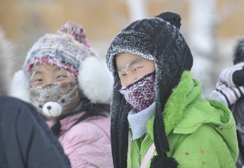 ????根河(內蒙古),2010年12月12日 內蒙古根河市最低氣溫達到零下45攝氏度 12月12日,根河市的孩子們在嚴寒中玩耍。 當日,內蒙古根河市最低氣溫下降到零下45攝氏度。據當地氣象部門介紹,由于近期寒流的影響,根河市的氣溫急劇下降,極度嚴寒的天氣已經持續(xù)3天。 (新華社記者 李欣 攝)