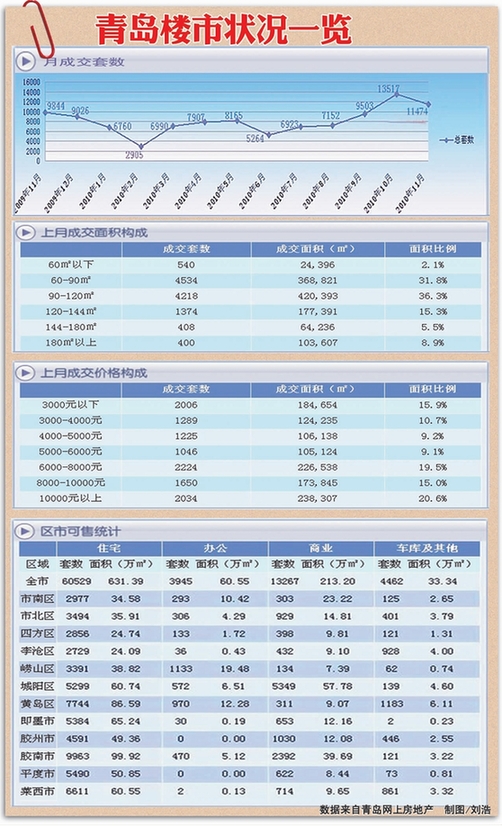 ????2008年,樓市慘淡,青島新房全年成交總量只有34734套;2009年,樓市火爆,全年新房成交總量也僅為86354套;而今年前11個月,新房成交總量為86560套。記者調(diào)查了解到,雖然已經(jīng)進入冬季,青島樓市卻一點也不冷,成交量趕超去年達到歷史最高位,其中,12月份截至12日,新房成交總量為4562套。不僅如此,炒樓花的現(xiàn)象又火了起來 ,幾家還未開盤的樓盤,房源已經(jīng)所剩無幾,一個房號叫賣價甚至到了兩萬元。
