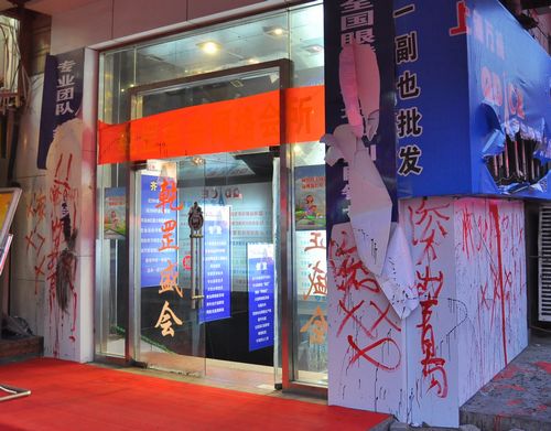 ????14日下午,記者來到位于臺東一路上的這家眼鏡批發(fā)城,批發(fā)城位于負一層,和一家網(wǎng)吧共用一個通道。記者在門口看到,正如網(wǎng)友所述,門邊的墻上用紅漆寫著“gun出青島!”的字樣,還畫了很多紅叉。旁邊燈箱廣告牌也被撕開了很大一塊,露出了里面的燈管。雖然已是傍晚,但是店里的顧客仍然不少,“聽說一副鏡架才賣8元,我就過來看看”,正在店里選購眼鏡的市民王女士說。