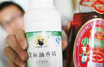 ????那么大瓶裝的香油不純都添加了什么?銷售人員不假思索地表示是香油添加了其它油,當(dāng)記者追問其它油是什么油的時(shí)候,這名男子警惕地看了記者一眼不再說話。隨后記者又到了另一家攤位,結(jié)果一名心直口快的女店主道出了其中的奧秘。“就是色拉油加點(diǎn)香油香精勾兌一下就行了。”這名女店主說。隨后她拿出了一瓶香油香精,記者一打開蓋子就聞到這種淡黃色的液體香氣四溢,只需要25元就能買一瓶。
