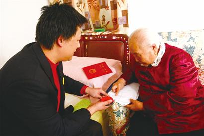 晚報(bào)訊 昨天,家住魚山路30號(hào)88歲的郝大娘,在家里等來(lái)了市房地產(chǎn)交易中心的工作人員,在相關(guān)的材料上蓋章摁手印后,她高興地拿到了自己的房產(chǎn)證。這是市房地產(chǎn)交易中心今年第541次上門送證。他們推出的登門服務(wù)專門幫助行動(dòng)不便的老年人等特殊群體。
