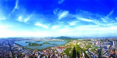 在紫峰大廈72樓觀光層俯瞰南京城。宋嶠 攝 圖 據(jù)揚子晚報