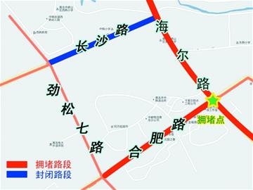 ????被堵在合肥路與海爾路路口已經(jīng)整整40分鐘了,出租車還沒有跑出1公里,王女士看著不斷跳字的計(jì)價(jià)器無奈地結(jié)賬,開始了她3公里的“健步行”。昨天是海爾路與長(zhǎng)沙路路口封閉施工后第一個(gè)工作日,從早上7時(shí)開始,海爾路從海爾立交橋到合肥路路段,以及合肥路從海爾路到勁松七路路段出現(xiàn)約2.5公里的交通擁堵,超過4000輛車被分別堵在了路上,交警隨即趕到現(xiàn)場(chǎng)展開疏導(dǎo),直到上午10時(shí)左右,近3個(gè)小時(shí)的大堵車才徹底結(jié)束。