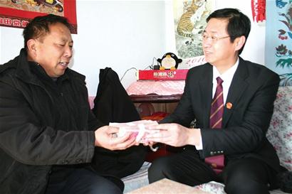 ????黃島法院執(zhí)行二庭負(fù)責(zé)人介紹,此案從2007年2月28日立案執(zhí)行后,先后向肇事方韓某下達(dá)執(zhí)行通知及傳票,但韓某身體有病,且離婚后只有兩間平房,本人只能靠吃低保維持日常生活,無履行能力?!氨景钢?,村委會(huì)需要承擔(dān)連帶責(zé)任,而財(cái)政困難的村委會(huì)同樣無法履行賠償款,經(jīng)院領(lǐng)導(dǎo)與辦事處領(lǐng)導(dǎo)、居委會(huì)負(fù)責(zé)人多次協(xié)商,街道同意先行為村委會(huì)墊付賠償款,并分期執(zhí)行。”該負(fù)責(zé)人介紹,從2008年開始,他們每年春節(jié)前執(zhí)行一筆賠償款為田春霞一家送去?!敖衲陥?zhí)行了6萬元,合計(jì)已執(zhí)行了14萬元,明年?duì)幦⒂嘞碌馁r償金執(zhí)行結(jié)案?!痹撠?fù)責(zé)人表示。 (記者 劉海龍 攝影報(bào)道)