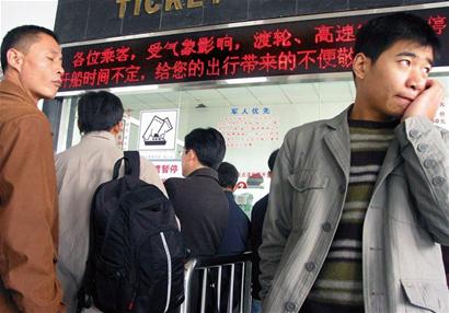 “最怕的就是遇到大風、大霧天,弄不好回家的時間就得耽擱?!眲⒊筛嬖V記者,工作了幾年,幾乎每年的50多個星期,得有一半都會遇上壞天氣。5點半下了班,趕到輪渡一瞧,輪渡和快船都不開,等他再打車跑到長途車站,末班車也都開走了,他只能郁悶地回到他那間不到10平方米的出租屋里,和妻子發(fā)短信、聊QQ。走運的話,周六一早還能往家趕,碰上倒霉的日子,周末和妻子相聚的那點時間就這么廢掉了。每次到了周三、周四,劉成就會暗暗地祈禱,希望老天爺千萬不要捉弄自己,一定不要再周五刮風下雨,一定要讓自己按時下班,早點到家。