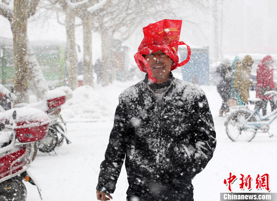 12月25日,威海文登市民在雪中前行。自24日開始,山東半島的煙臺威海地區(qū),持續(xù)降小到中雪,局部大雪,威海市氣象臺發(fā)布道路結(jié)冰黃色預警和大風黃色預警,持續(xù)的低溫降雪對當?shù)毓方煌ㄔ斐闪擞绊懀忻裨诎酌CQ┲卸冗^圣誕節(jié)。中新社發(fā)陳宏青 攝