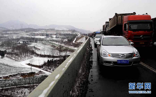 12月24日,國道連霍高速公路三門峽段由于降雪造成交通擁堵。當(dāng)日,位于豫西山區(qū)的三門峽地區(qū)普降小到中雪,這是入冬以來這一地區(qū)的首次降雪,對緩解當(dāng)?shù)睾登槠鸬椒e極作用。朱祥攝