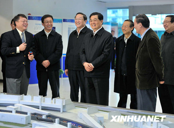 1月14日至17日,中共中央總書記、國家主席、中央軍委主席胡錦濤在上海市考察工作。這是胡錦濤在上海同步輻射光源工程考察時,詳細了解這一工程的建設、運行和為科學實驗提供服務的情況。新華社發(fā)