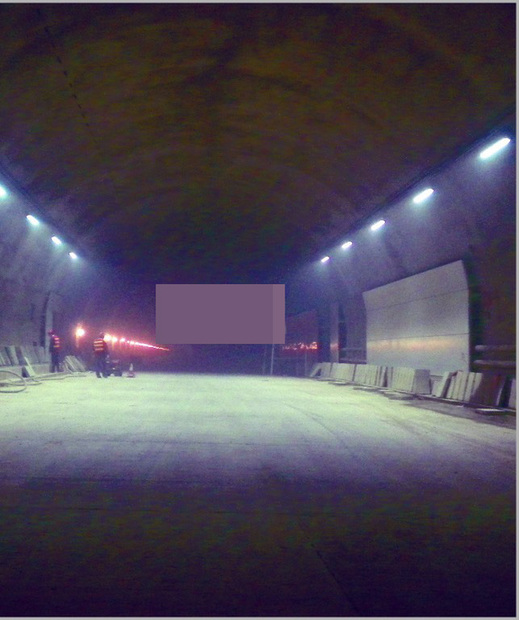 ????在安裝有護板的區(qū)域內,記者看到此處也安裝了 LED燈,燈具一共兩排,位于隧道的頂部,每隔兩三米就安裝一只燈具,燈具長近一米,兩排燈具照射下,隧道顯得格外亮堂,與未安設LED 燈的隧道形成了鮮明的對比。