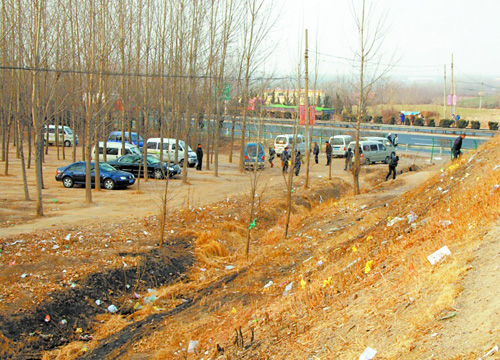 ??? 小樹林里停著許多非法營運車輛,附近村民稱,多的時候達50多輛車。