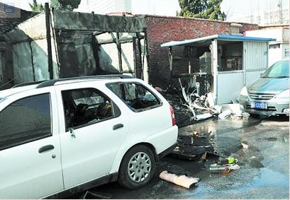 ????“大火是從南側(cè)這間較高的簡易房著起來的,因為簡易房主要是木質(zhì)結(jié)構(gòu),很快就被近兩米高的火焰吞沒,北側(cè)這間小鐵皮屋也隨即被點燃?!庇浾呲s到現(xiàn)場時,周圍的居民正在對這場離奇的火災(zāi)議論紛紛。記者在現(xiàn)場看到,起火的兩間簡易房就在路邊的角落里,消防隊員已經(jīng)將火撲滅。