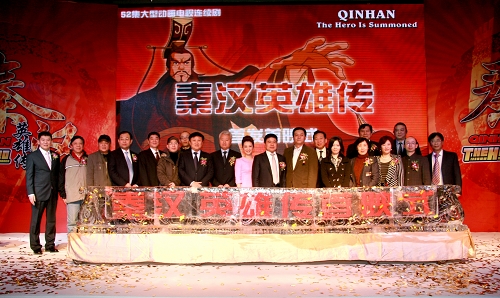 青島新聞網(wǎng)1月11日訊 52集大型動畫電視連續(xù)劇《秦漢英雄傳》昨日在青舉行全球首發(fā)首映式。該劇由青島歐亞集團有限公司、北京輝煌動畫公司、央視動畫有限公司共同投資,城陽區(qū)委宣傳部協(xié)助拍攝。市委常委、宣傳部長王偉,中國國際電視總公司副總裁張海潮,市人大常委會副主任馬澤,副市長王修林,市政協(xié)副主席劉偉出席儀式。