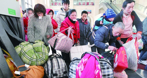 ????1月18日上午9時,本市2011年春運啟動儀式在青島機場舉行,跟1月19日將要開始的全國春運相比,青島的春運提前了一天。據(jù)了解,春運首日島城就進(jìn)入了客流高峰期,這股客流高峰預(yù)計將持續(xù)到2月2日(大年三十)。記者了解到,目前青島去往東北和西北方向的火車票持續(xù)緊張,而從青島出發(fā)的長途車票也開始緊張起來,不少方向開始出現(xiàn)加班車,有出行打算的市民最好提前購票。