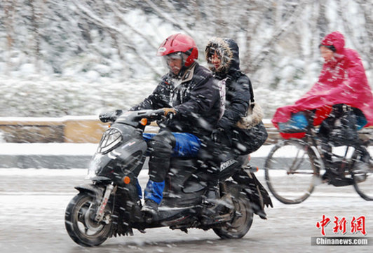 ????1月18日,一場大雪突降江西九江,贛北大地一片銀白,居民出行受到影響。2011年春運將于19日啟動,當?shù)亟痪块T加強值勤,鐵路部門做好車輛防斷檢修和餐車食品供應工作,確保春運安全暢通。胡國林 攝 圖片來源:CNSPHOTO 資料圖
