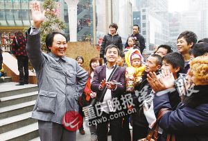“毛主席萬歲!”昨下午兩點(diǎn)過,渝中區(qū)解放碑。隨著一陣陣呼喊聲,千余名市民紛紛拿出相機(jī)、手機(jī)拍攝。