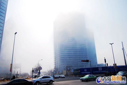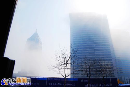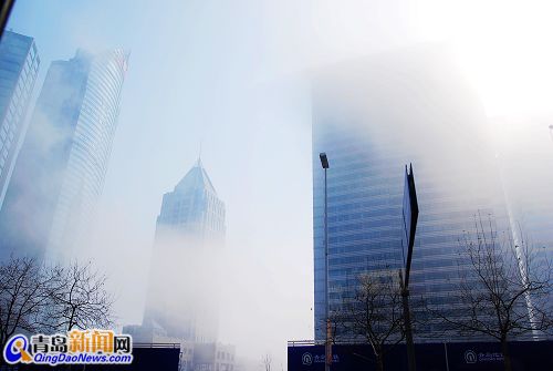 青島奇景:沿海云霧繚繞 市區(qū)陽(yáng)光明媚