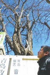 “我曾經(jīng)與住在院子的蘇女士聊過天,對方說這兩棵無刺槐是父輩種下的?!庇谙壬f,他查閱了《青島古樹名木志》,并沒有對這兩棵古樹的記載。