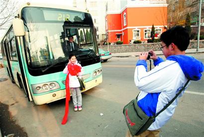 ????更令人高興的是,學(xué)生專線配備的司機(jī)都是公交集團(tuán)最優(yōu)秀的駕駛員,車廂里寬敞整潔,玻璃擦得錚亮,絲綢的大紅花戴在車頭、車窗上醒目地?cái)[著學(xué)生專車的牌子。看著就讓人高興。