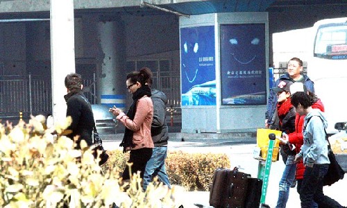 ????接近上午11點(diǎn)時(shí),兩位美女引起了筆者注意,兩人全部是素顏亮相,而且行蹤很是低調(diào),始終在某個(gè)角落靜靜等待。直到中午12點(diǎn),兩人突然接到電話,同時(shí)向接機(jī)口行動(dòng)。此時(shí)黃海波帶領(lǐng)助理走出登機(jī)口,迅速與兩位美女會(huì)合。看到眼鏡美女親自迎接,舟車勞頓的黃海波露出一絲笑容。