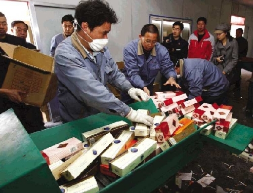 ????在銷毀現(xiàn)場,記者感到被銷毀的煙卷氣味刺鼻,工作人員帶著口罩還不停地咳嗽?!氨緛頍煵菥陀形:?,假煙的危害可能要翻番?!鼻鄭u市煙草專賣局一負(fù)責(zé)人介紹,假煙的煙絲一般都是黑色的、劣質(zhì)的,為了弄成黃色,一般都經(jīng)過了硫磺熏制,雙氧水浸泡,所以氣味刺鼻,對身體的危害也更大。