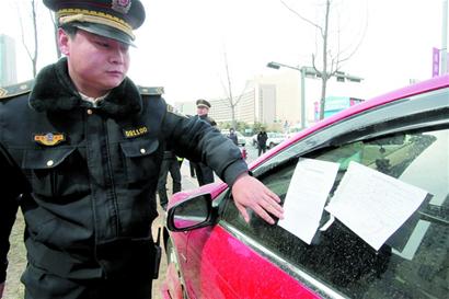 ????“對在人行道上亂停車的,第一次我們一般會貼一個提醒通告,以后才貼罰款單?!睂O林告訴記者,他們發(fā)現(xiàn)占用人行道停車的違法車輛后,將先從信息庫內(nèi)查詢,如果該車曾被提醒過,那么就要進(jìn)行處罰。根據(jù)我市相關(guān)規(guī)定,對于占用人行道亂停車屢次不改的,城管部門可以采取強(qiáng)制措施,所以如果查到該車?yán)塾嬘?次在人行道亂停車,并未交罰款的,城管部門將直接給予鎖車,強(qiáng)制車主接受處理。