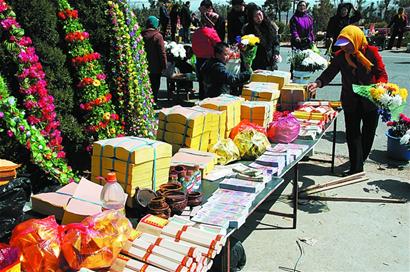 又到一年清明時,卻見紙花遍地飛。原本一個寄托哀思的神圣日子,卻成相互攀比的舞臺,商家暴賺的肥肉,不知道先人怎么想?
