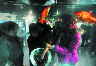 昨天,青島海底世界接待游客0.8萬人次,與去年同期基本持平。記者在海底世界看到,省內(nèi)首個采用負壓原理設(shè)計的神奇“太空魚缸”吸引了不少游客的眼球。這種特大號魚缸,3.1米長、1.5米高、正面下方兩側(cè)各伸出了3只半圓型的喂食口,魚兒可以悠然地游進游出,游客可以從喂食口將手伸進去撫摸魚兒,給魚喂食,體驗與魚兒親密接觸的美妙感覺。更為神奇有趣的是,魚缸里的2噸重的水卻不會從開口處溢出,像在太空失重狀態(tài)下一樣,非常奇妙。