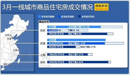 ????北京出現(xiàn)的情況并非個(gè)案,天津、杭州、上海、深圳等地也出現(xiàn)了成交縮水、房?jī)r(jià)下行的態(tài)勢(shì)。中國(guó)指數(shù)研究院的監(jiān)測(cè)顯示,2011年3月天津市商品住宅成交6286套,成交面積62 .02萬(wàn)平方米,環(huán)比下降40 .41%,均價(jià)8326元/平方米,環(huán)比下跌6.17%。價(jià)格波動(dòng)雖較為緩和,但已連續(xù)四個(gè)月下行。該院數(shù)據(jù)顯示,3月上海市商品住宅成交均價(jià)為13806元/平方米,環(huán)比下滑7.57%;3月深圳市商品住宅成交均價(jià)為19424元/平方米,環(huán)比下跌5.65%。