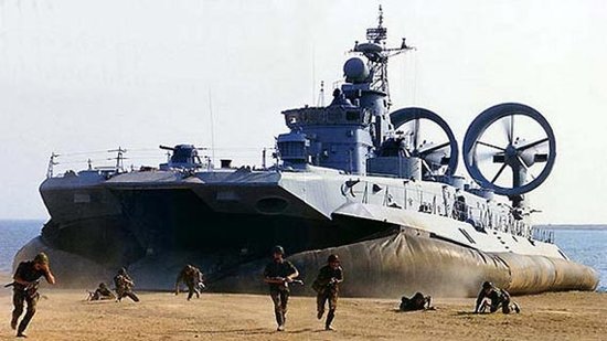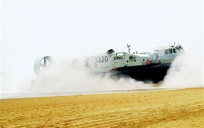 資料圖片:氣墊船的特點(diǎn)使其適于登陸作戰(zhàn)