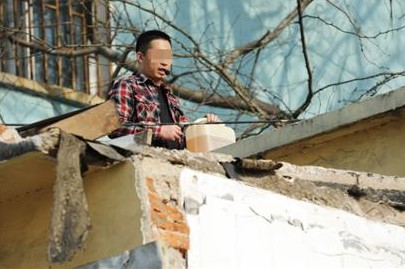 昨日下午,青島水清溝公園內(nèi)一名中年男子拎著裝滿汽油的油桶爬上一處要被拆除的違法建筑房頂,阻撓工人拆除?!爱敵踝夥繒r簽了合同,現(xiàn)在卻說是違法建筑。你們誰也不能拆,誰拆我就給你們好看?!蹦凶佑秒S身攜帶的擴音器向房下喊話,還將部分汽油淋到了自己的身上,并且情緒激動地從兜里掏出了打火機……