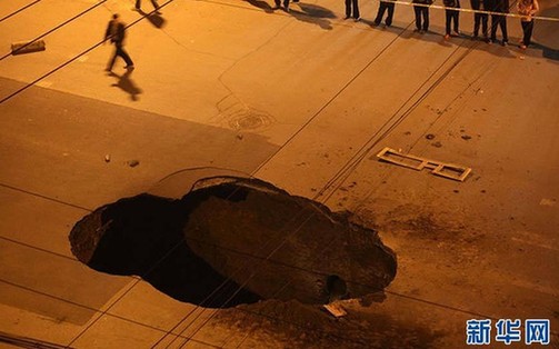 北京發(fā)生路面塌陷貨車深陷 司機(jī)已被救出(圖)